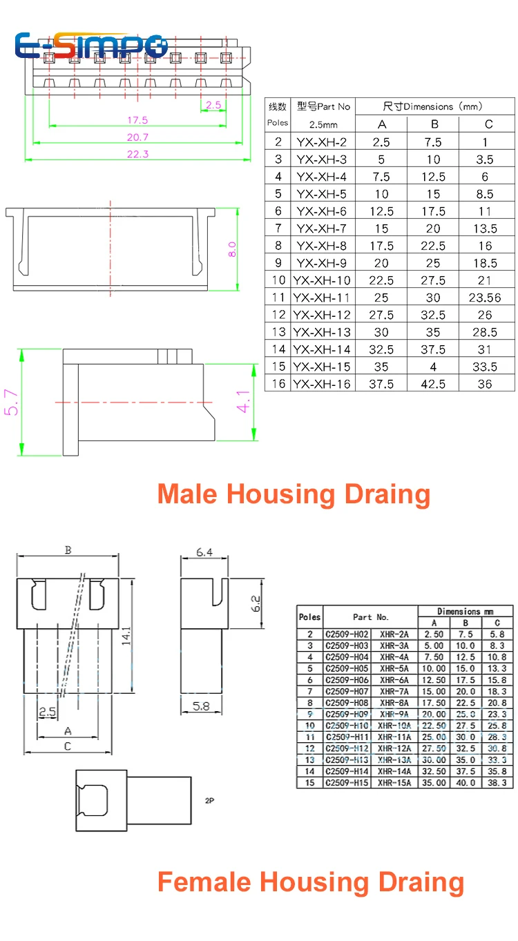 10 Uds 22AWG/26AWG XH2.54 10cm 20/30cm hembra macho 2P 3P 4P 5P 6P conector de Cable de Terminal de engarce de acoplamiento aéreo de junta a topeEspecificación: