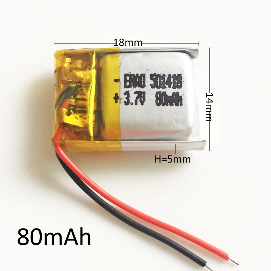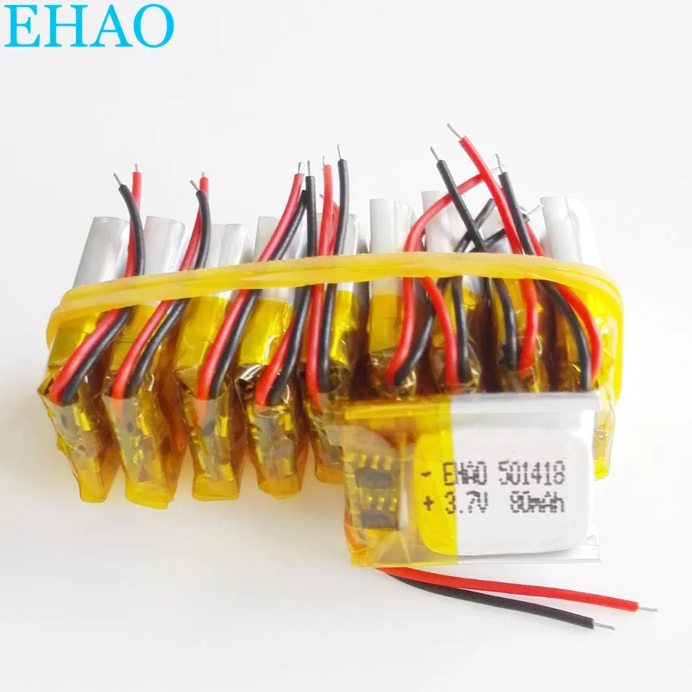 Venta al por mayor 10 Uds 3.7V 80mAh 501418 batería recargable de polímero de litio LiPo para teléfono inteligente Mp3 Mp4 Mp5, reloj inteligente, gps, auriculares bluetooth DVD E-book...
