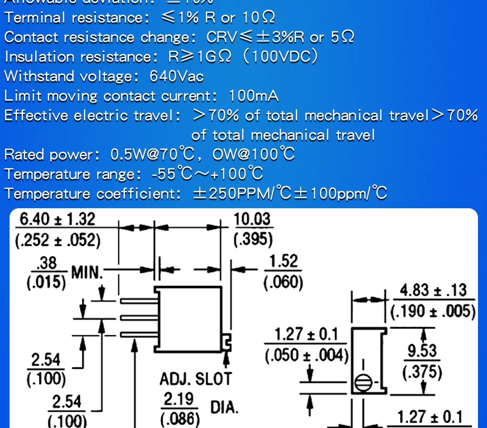 10 Uds 3296 Kit de potenciómetro recortador alta precisión 3296W resistencia Variable 10-1KOhm 10R 50R 1k 2k 5K 10K 20K 50K 100K 200k 500k