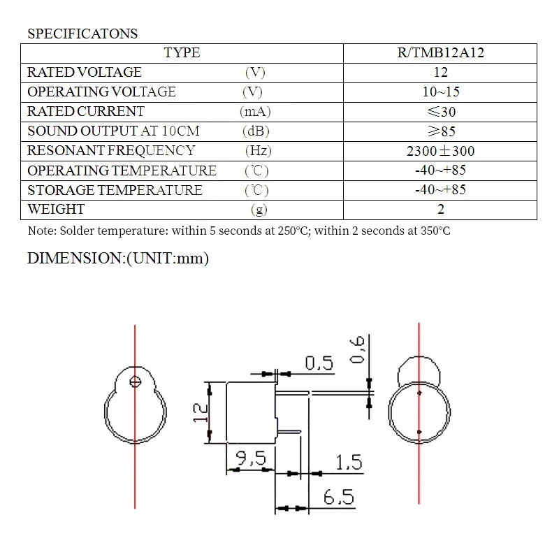 10 Uds 3V 5V 12V zumbador activo 12mm magnético largo tono de pitido continuo alarma timbre zumbador piezoeléctrico para ordenadores impresoras