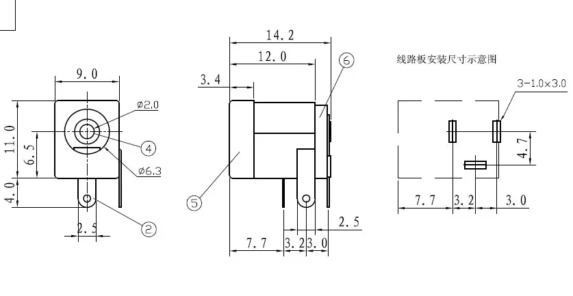10 Uds 5,5x2.1/2.5mm DC-005 negro DC toma de corriente CC conectores de suministro tipo barril Terminal de montaje PCB de ángulo recto