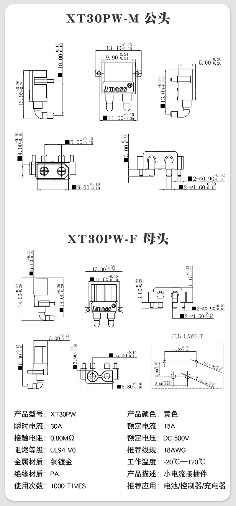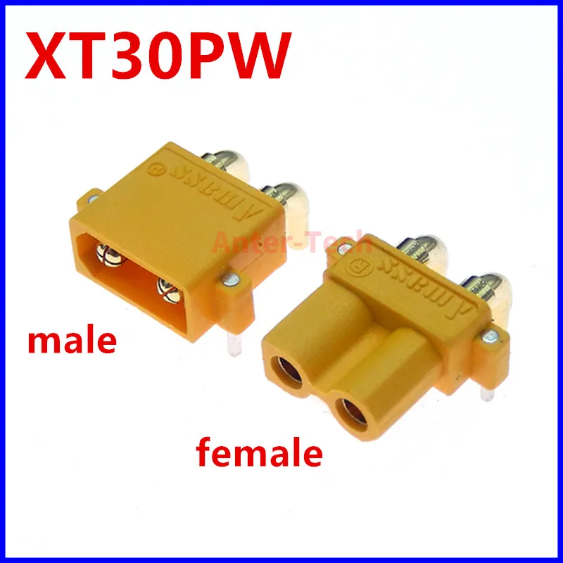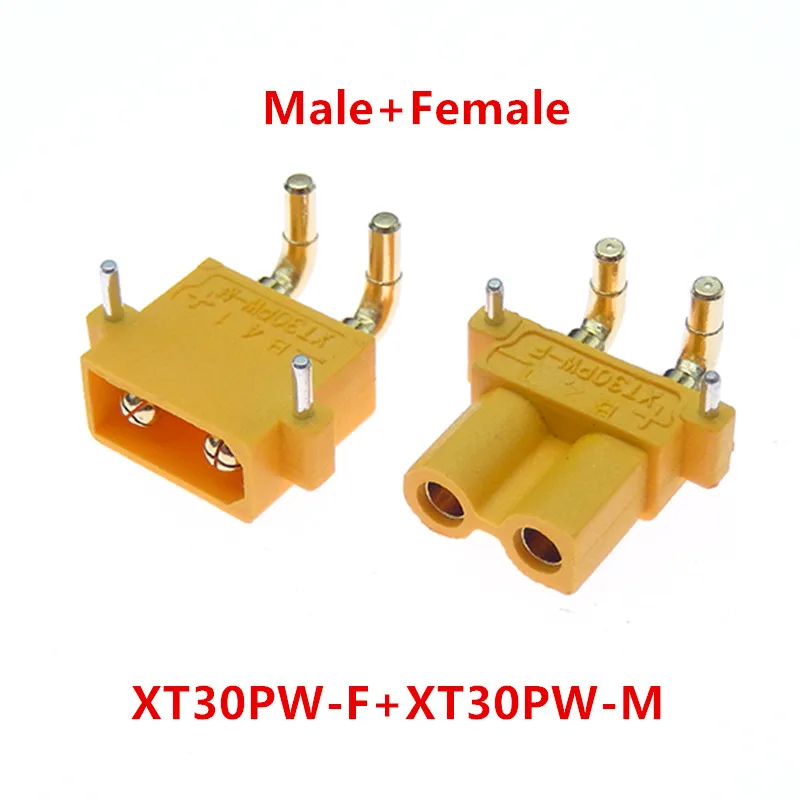 Comprar 10 uds/5 pares Amass XT30PW conector macho hembra placa PCB 2mm cabeza dorada Banana conector Horizontal de ángulo recto para modelo RC