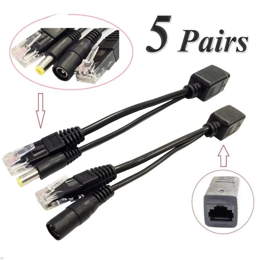 Comprar 10 Uds (5 pares) divisor POE interruptor POE Cable adaptador cinta blindado 5V 12V 24V 48V Cable de alimentación 5,5*2,1mm
