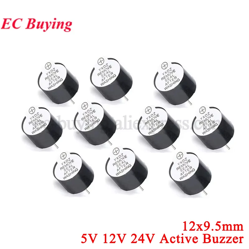 Comprar 10 uds/5 uds 5V 12V 24V zumbador activo tono de pitido continuo largo magnético 12*9,5mm 12x9,5mm TMB12A05 TMB12A12 TMB12A24 alarma de altavoz