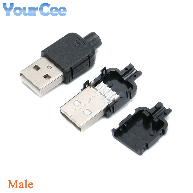 10 uds/5 uds tipo A macho hembra USB conector de enchufe de 4 pines con cubierta de plástico negro tipo A USB2.0 macho Kits de bricolaje