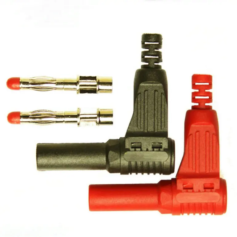 Comprar 10 uds/50 Uds cobre 4mm macho ángulo recto cable de aislamiento tipo soldadura DIY conector adaptador de enchufe Banana