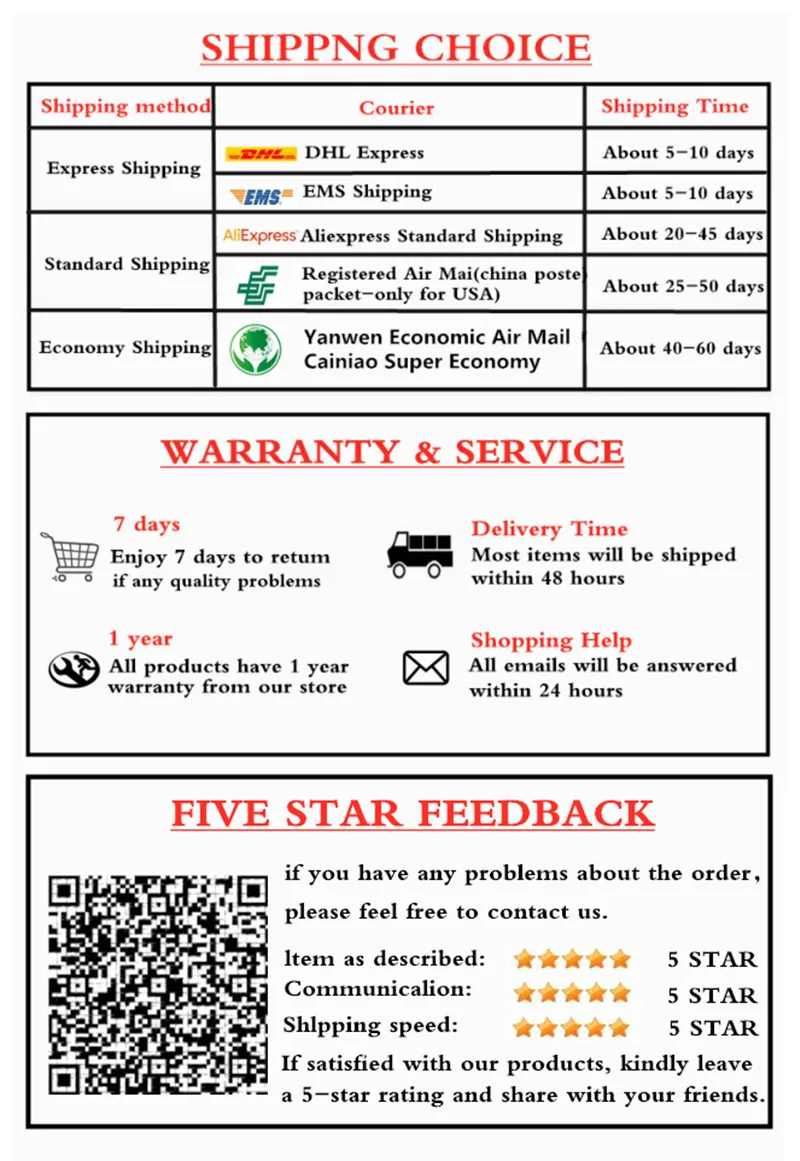 3.- Brindamos servicio de reparación gratuito dentro de un año de la compra.Durante el primer mes, pagaremos el costo de envío de ida (desde nosotros hasta su ubicación); Después de 1 mes de la compra, el comprador debe pagar dos formas de costo de envío.