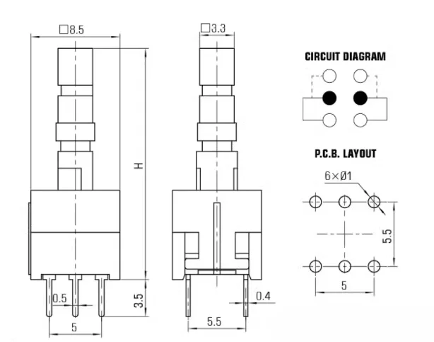 Comprar 10 Uds 8,5*8,5mm 6 pines Mini interruptor de botón de bloqueo automático DIP DPDT interruptor multímetro