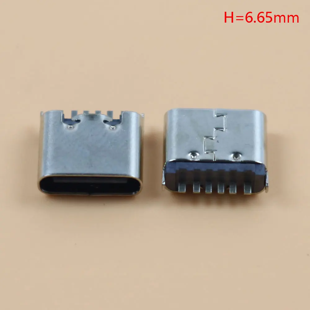 Comprar 10 Uds. Asiento hembra USB tipo C 6P recto en vertical 180 grados de altura H = 6,65/6,8/6,9/9,3/10,0/10,5mm asiento femenino de carga rápida