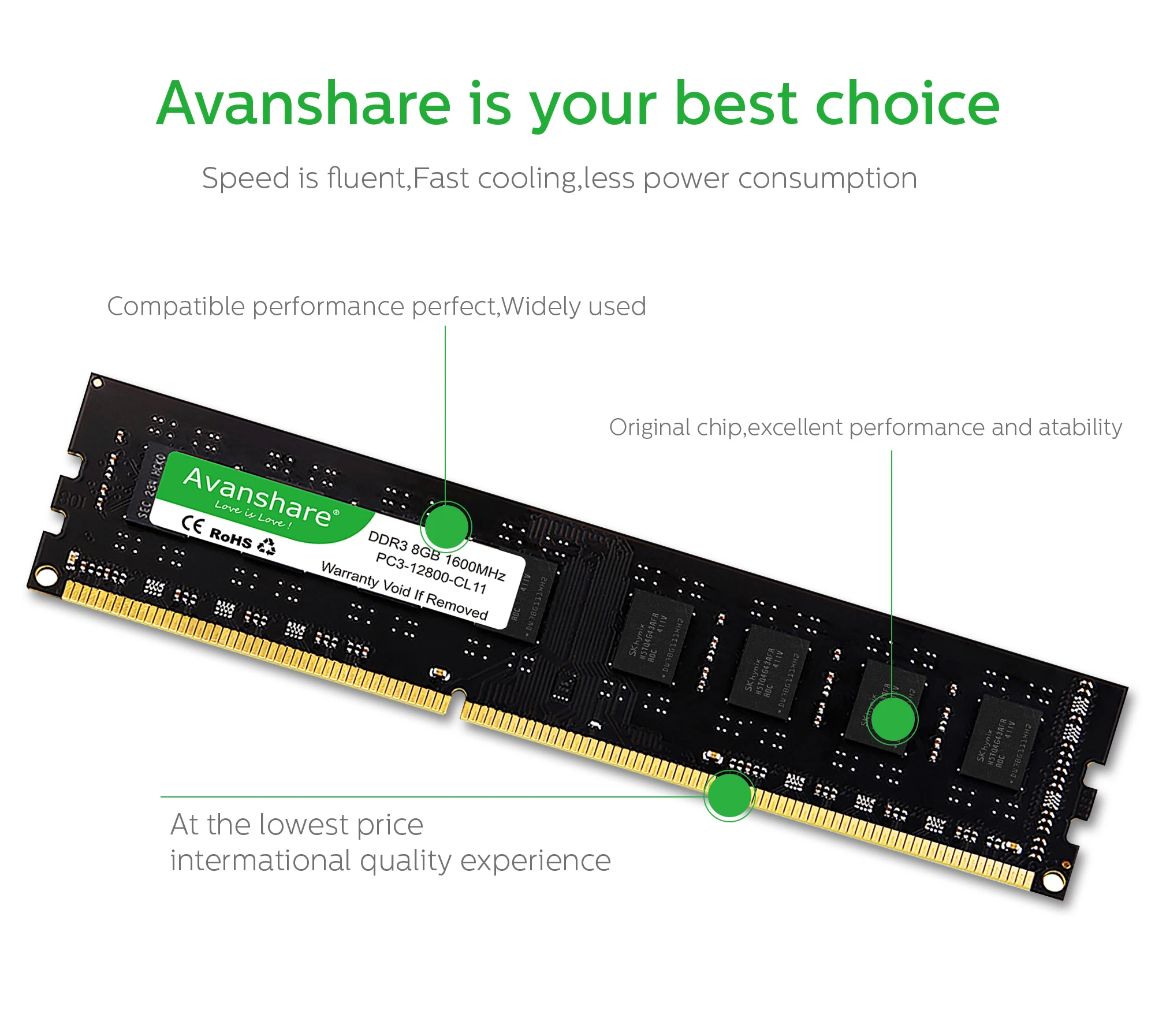Ya sea usuario general, jugadores o entusiastas de la informática, puede sentir que la memoria de Avanshare mejora el rendimiento de la computadora.