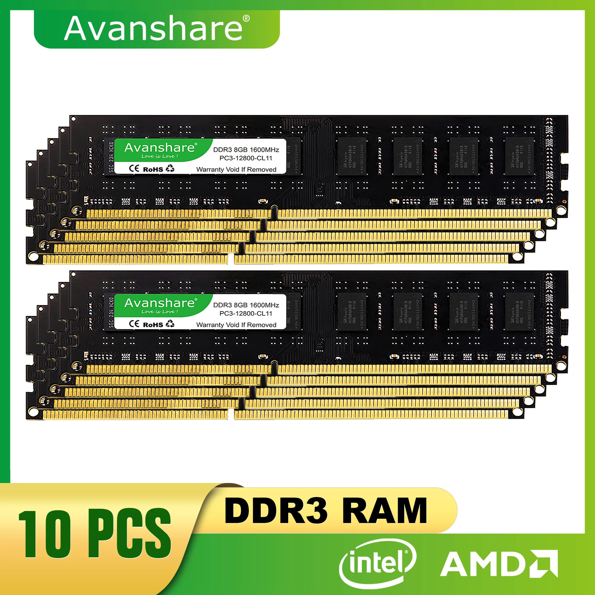 10 Uds Avanshare memoria RAM DDR3 4GB 8GB 1333MHz 1600MHz 1,5V PC3-12800U memoria de escritorio DIMM 240 pines sin ECC compatible con Intel AMD