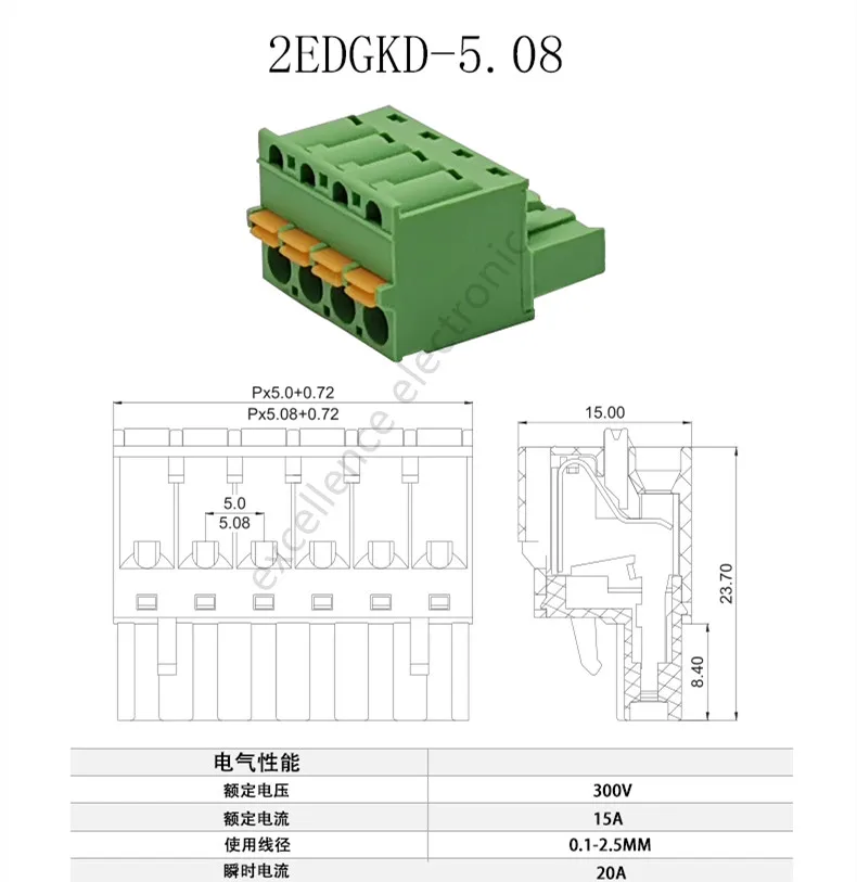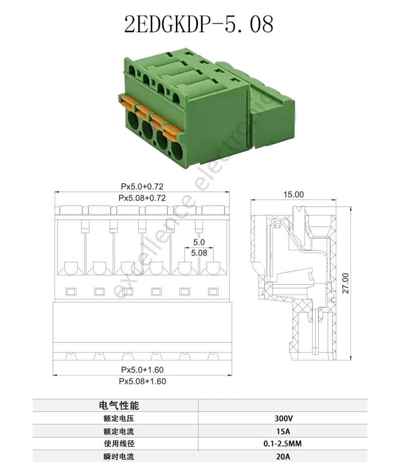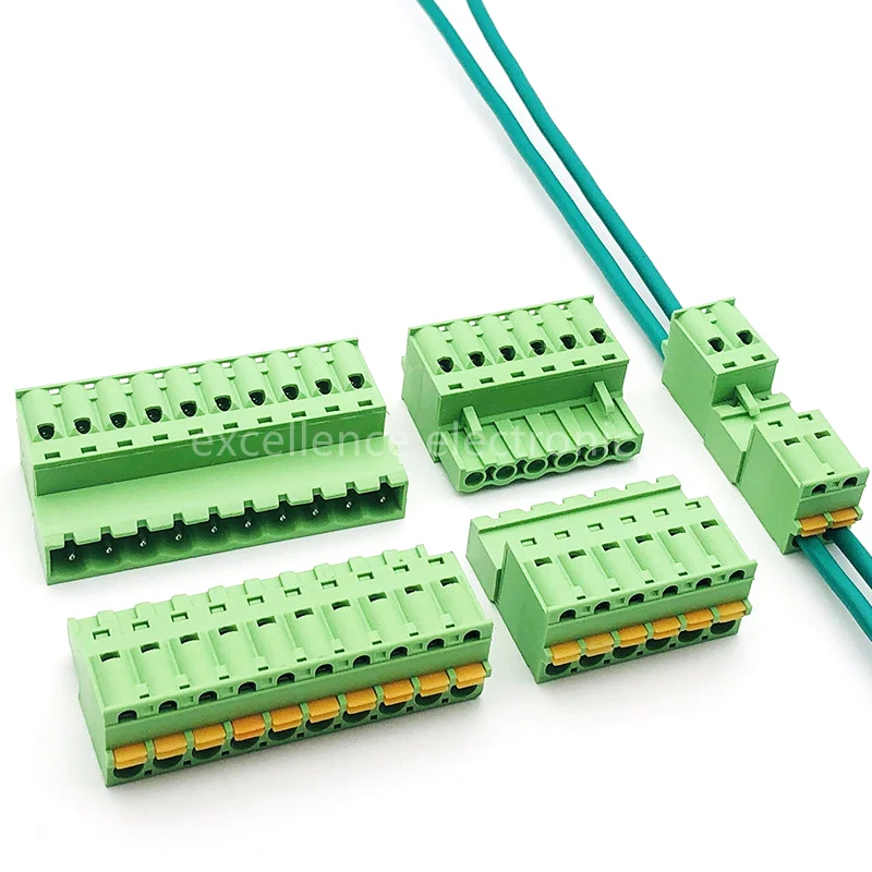 Comprar 10 Uds. Bloque de terminales de 5,08mm sin soldadura sin tornillos 2EDG 5,08 conector macho hembra enchufable de prensa de resorte 2P 3P 4P 5P 6P 7P 8P