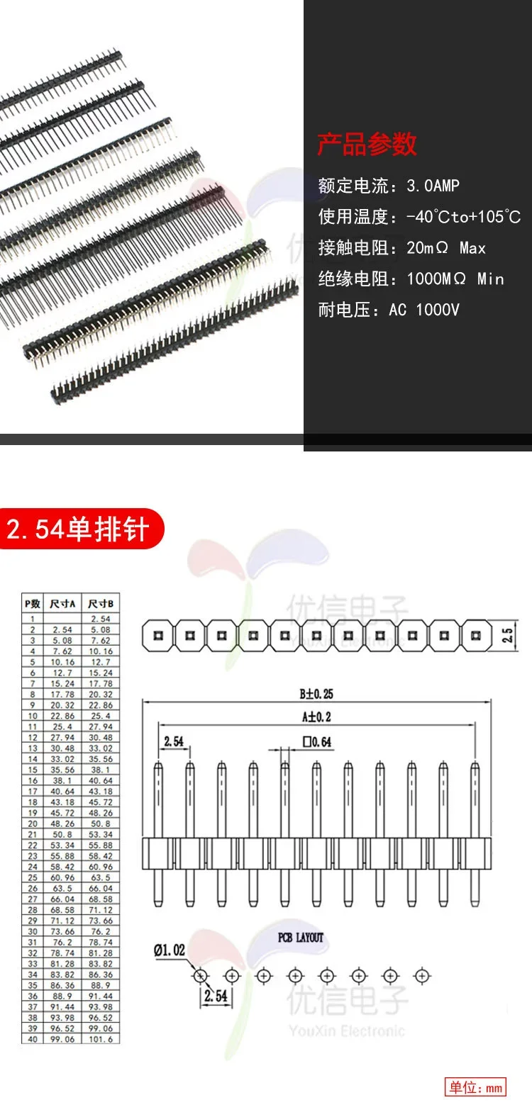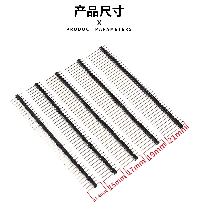 10Pcs 2.54mm Pin Header Single Row Straight Copper Needle Gold Plating 1 * 40Pin 1X40P Length 11.4/13/15/17/19/ 21/23/25/30/40mm