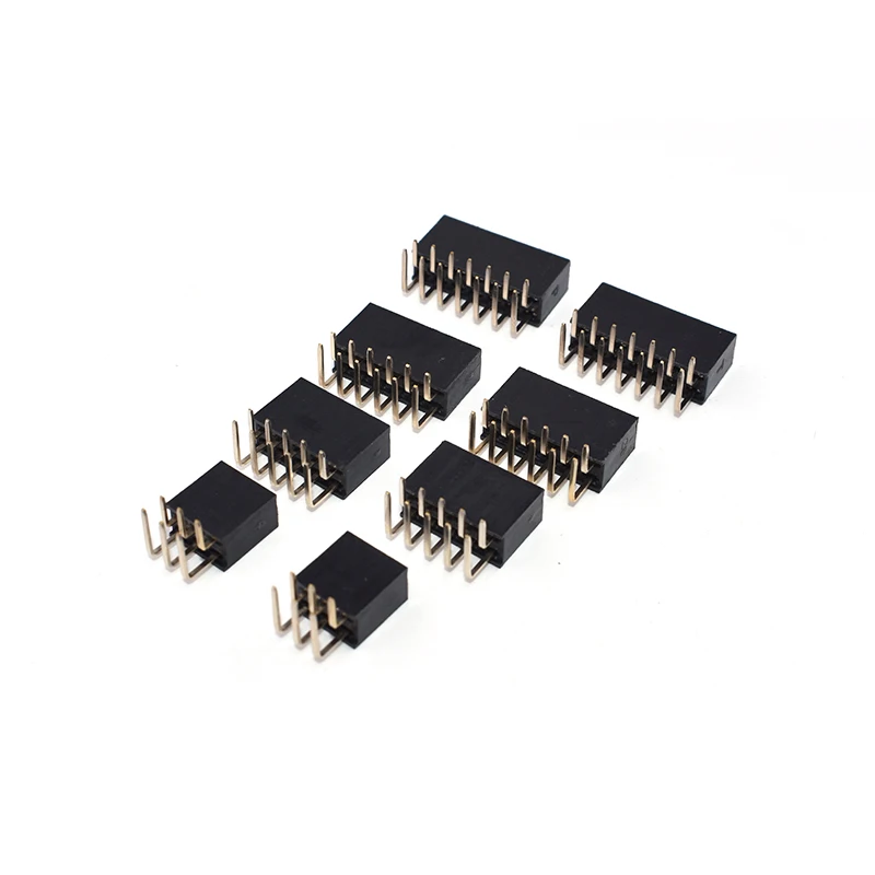 Comprar 10 Uds cabezal de Pin hembra 2,0mm espaciado doble fila Base de aguja curva de 90 grados 2*4/5/6/7/8/10/20/40 pines