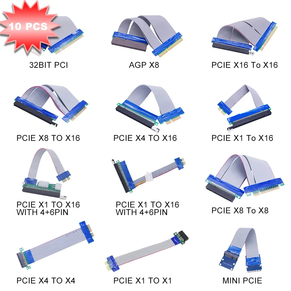 Comprar 10 Uds Cables PCIE a X16 X8 X4 X1 AGP X8 Cable MINI adaptador PCIE 4 pines 6 pines Cable de alimentación ranura de expansión Flexible para tarjeta gráfica