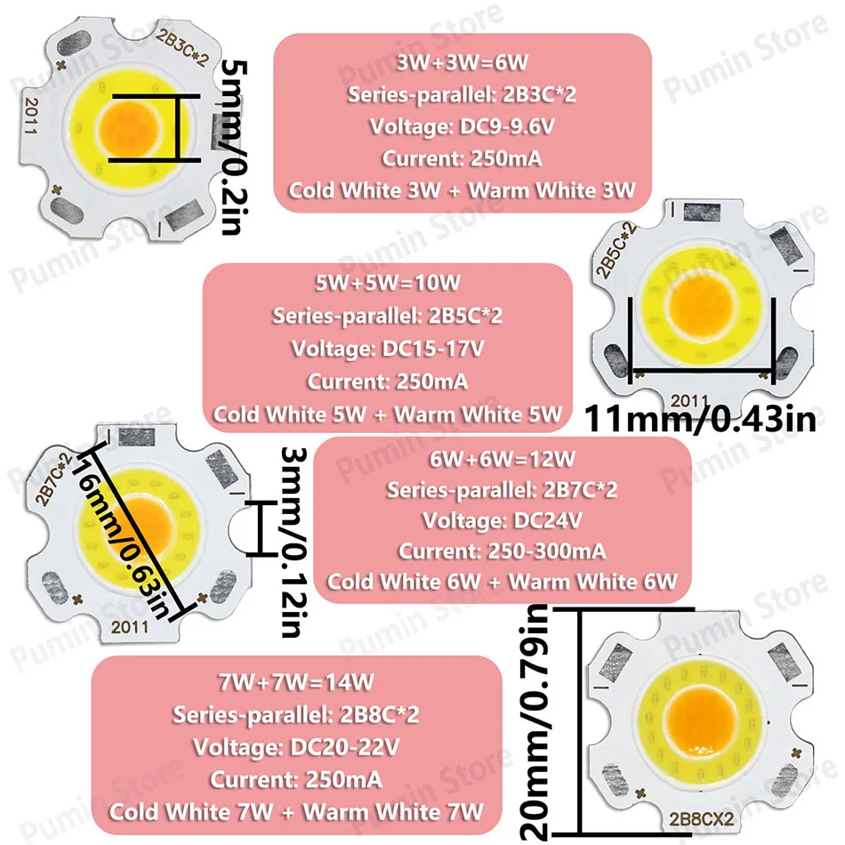 Blanco frío 7W + Blanco cálido 7W