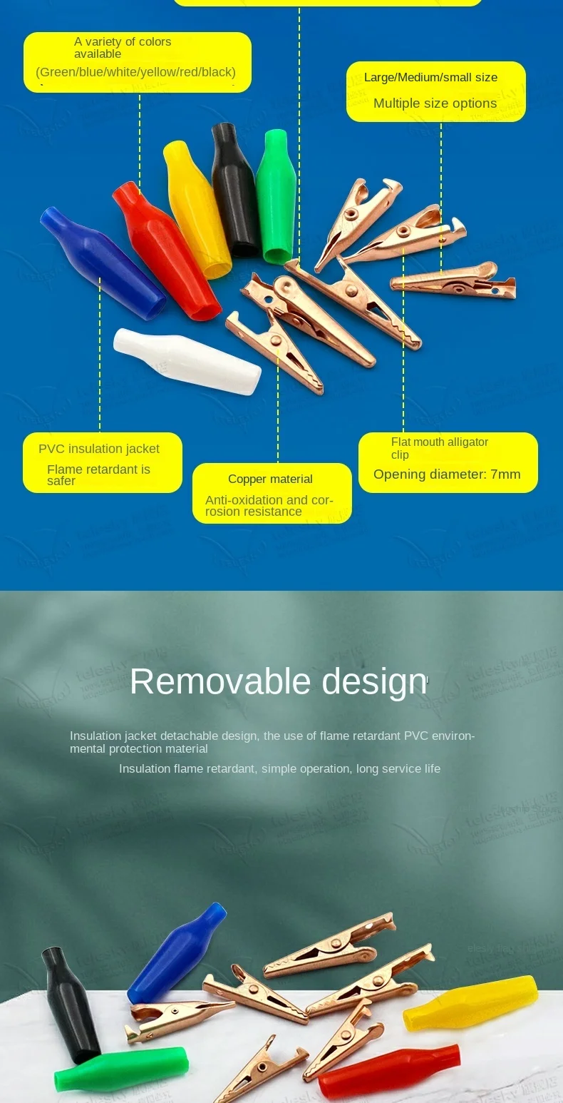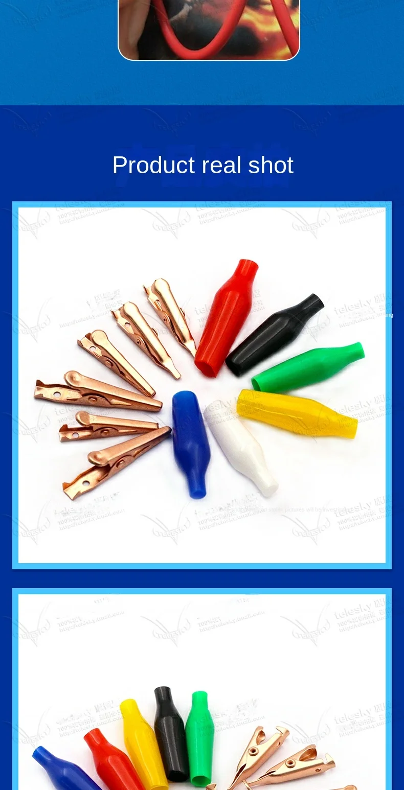 10 Uds Clip tipo cocodrilo 24/25/28MM negro rojo azul negro amarillo sonda de prueba recubierta de plástico suave Mini Clips de prueba de cocodrilo
