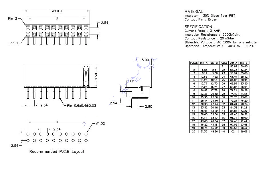 10 Uds. Enchufe de ángulo recto de paso de 2,54mm hembra de doble fila 2X2P/3/4/5/6/8/10/16/20/25/30/40Pin conector de PCB hembra de doble fila