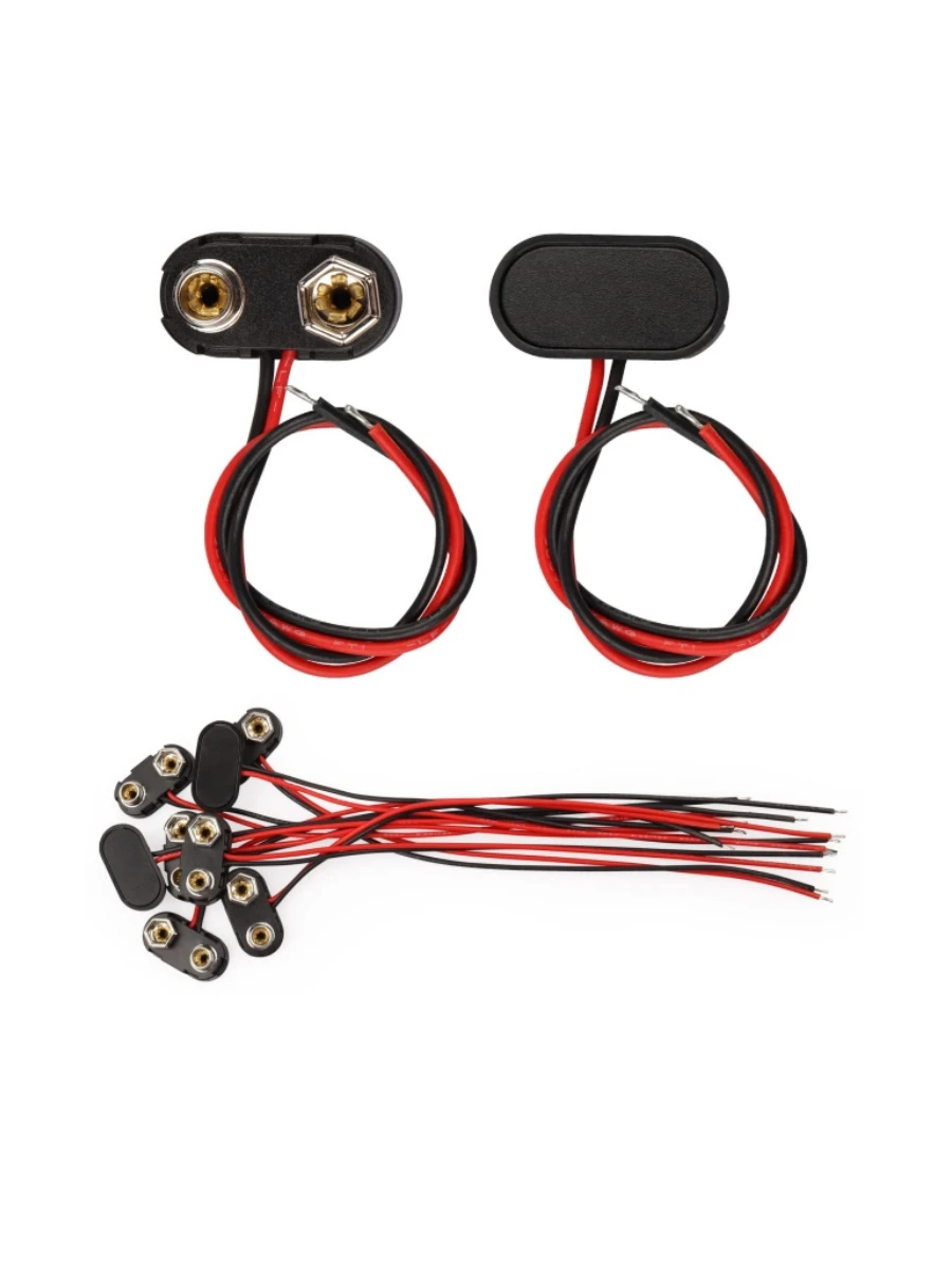 Contenido del paquete: Conector de clip para batería de 9 V (la batería no está incluida aquí).