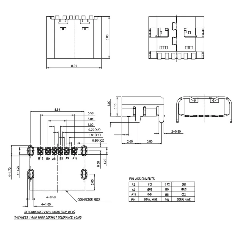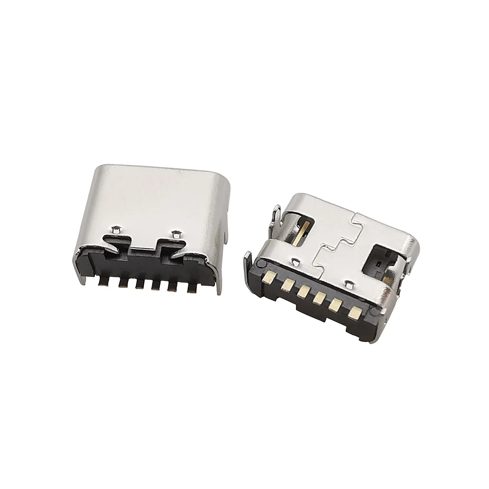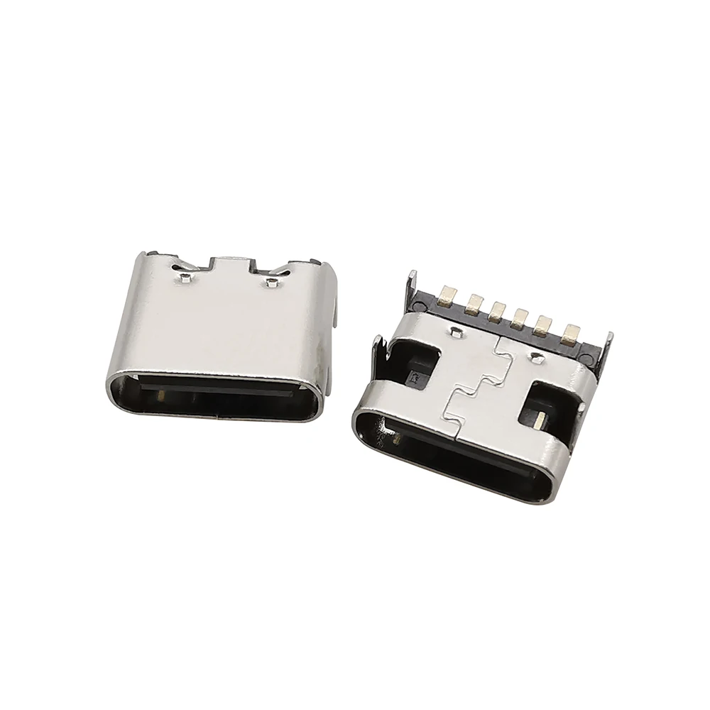 Conector de enchufe USB tipo C de 6 pines, ubicación hembra SMT SMD para PCB, puerto de carga DIY, 10 Uds.