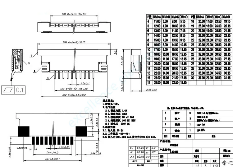 Comprar 10 Uds conector FFC FPC 1,0mm 4 pines 6 8 9 10 12 14 16 18 20 22 24 26 30P contacto superior ángulo recto SMD/SMT ZIF