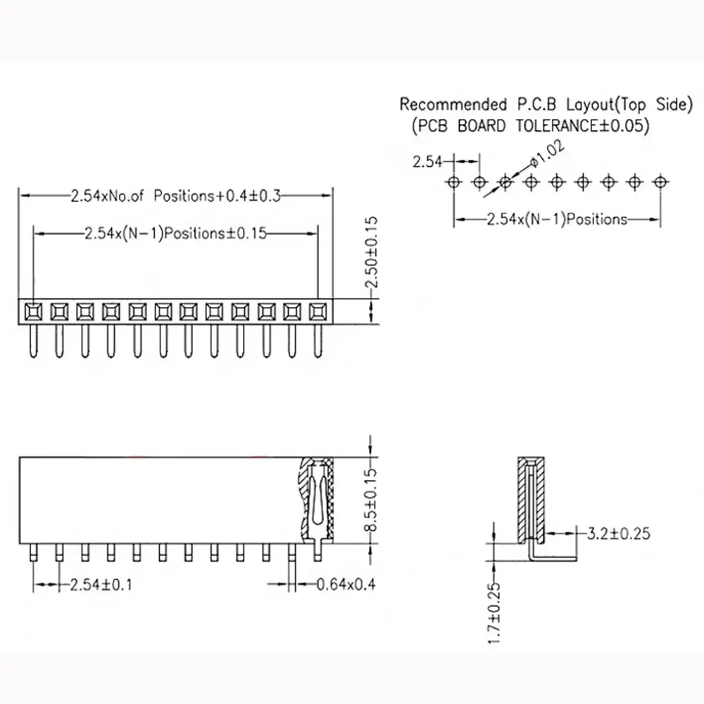 Comprar 10 Uds. Conector hembra doblado de 90 grados de una sola fila paso 2,54mm 1*2P 3P 4P 5P 6P 7P 8P 9P 10P 20P 40Pin