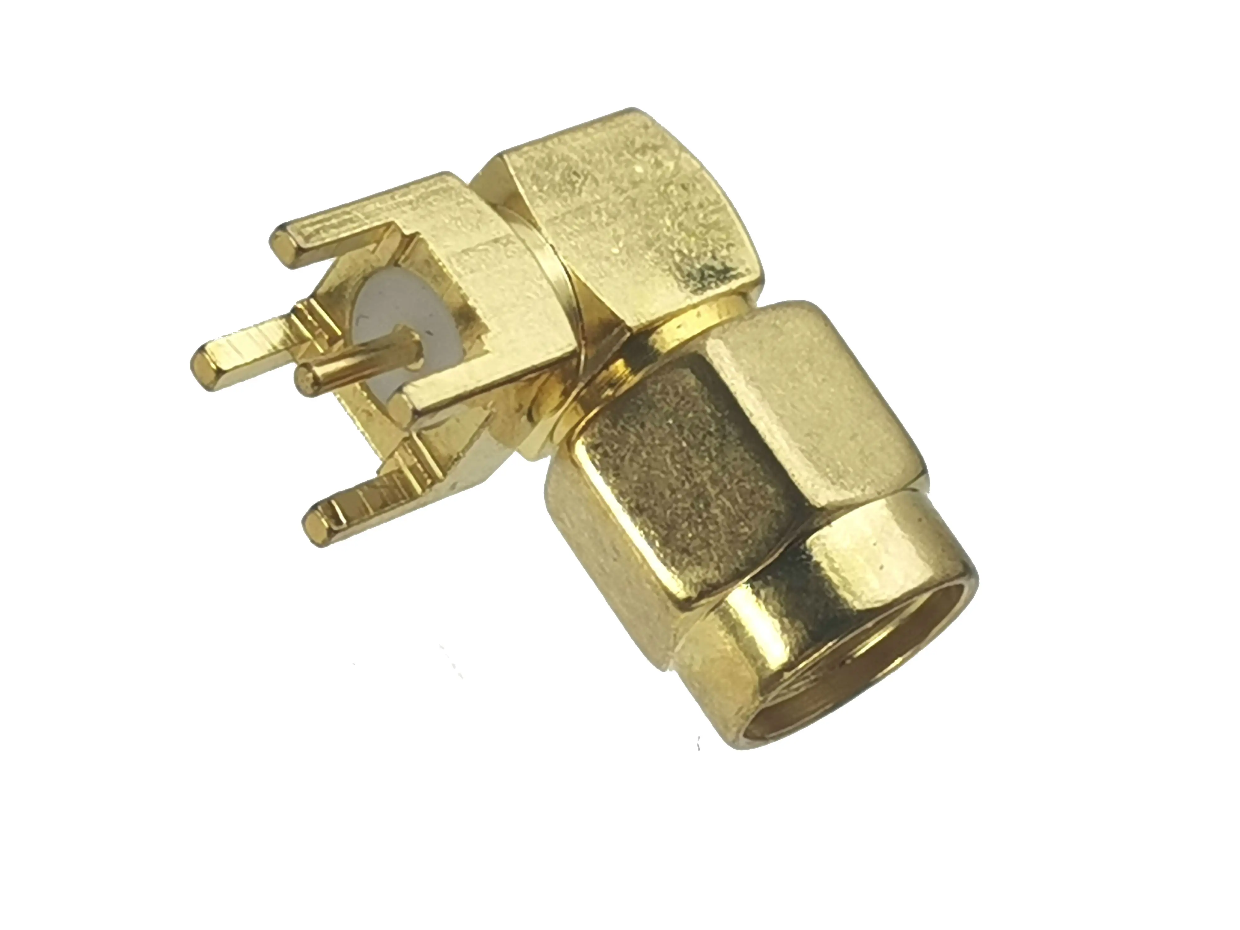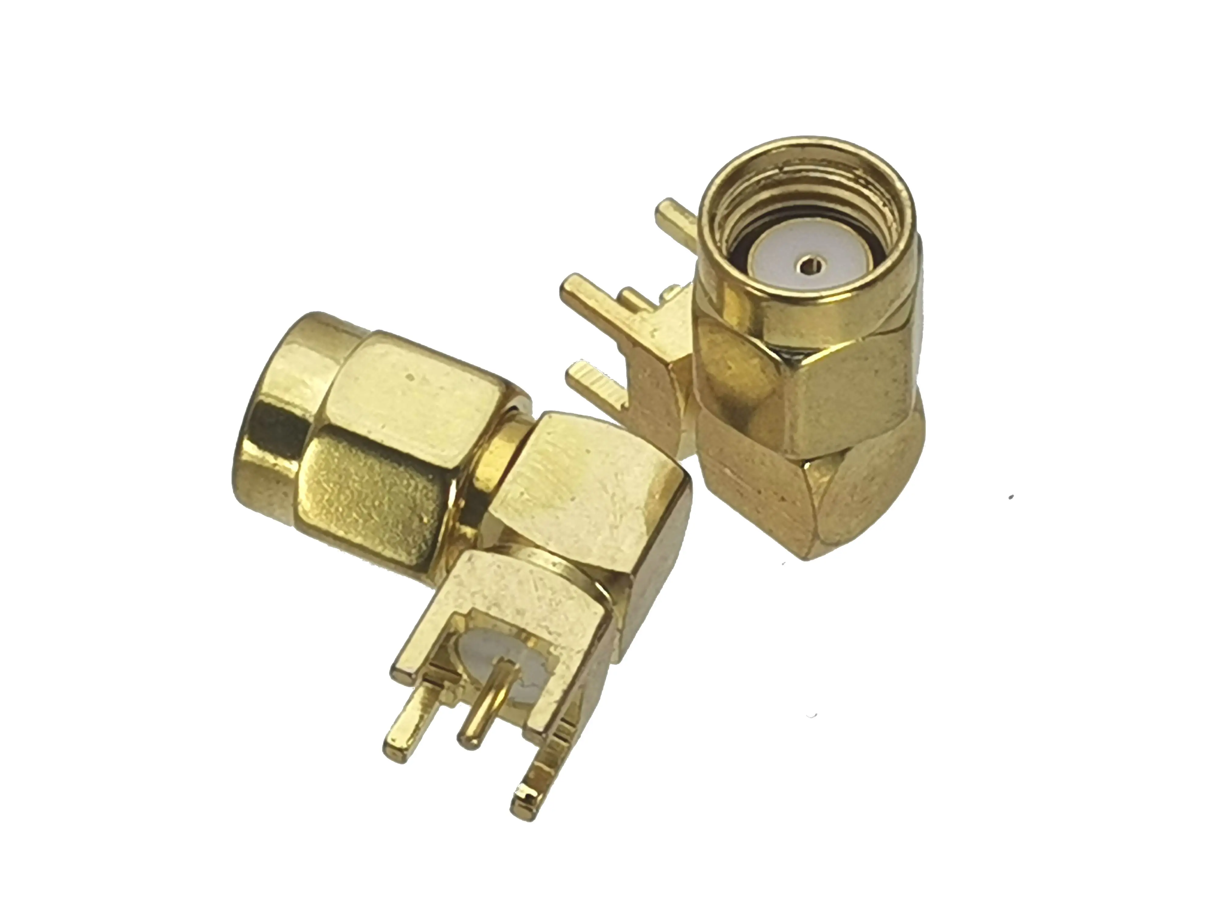 10 Uds conector RP-SMA RPSMA Male jack ángulo recto montaje de PCB de soldadura RF Coaxial adaptador de alta calidad