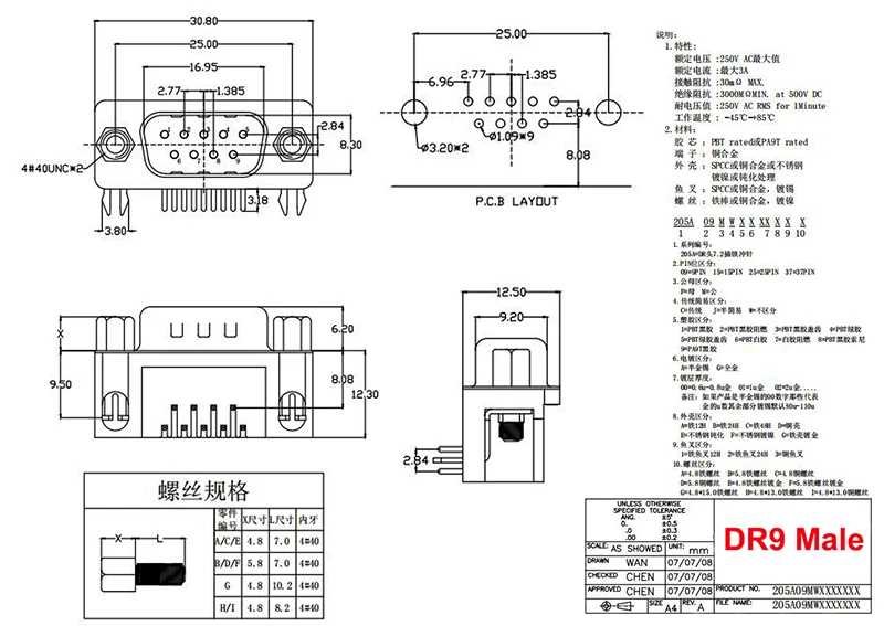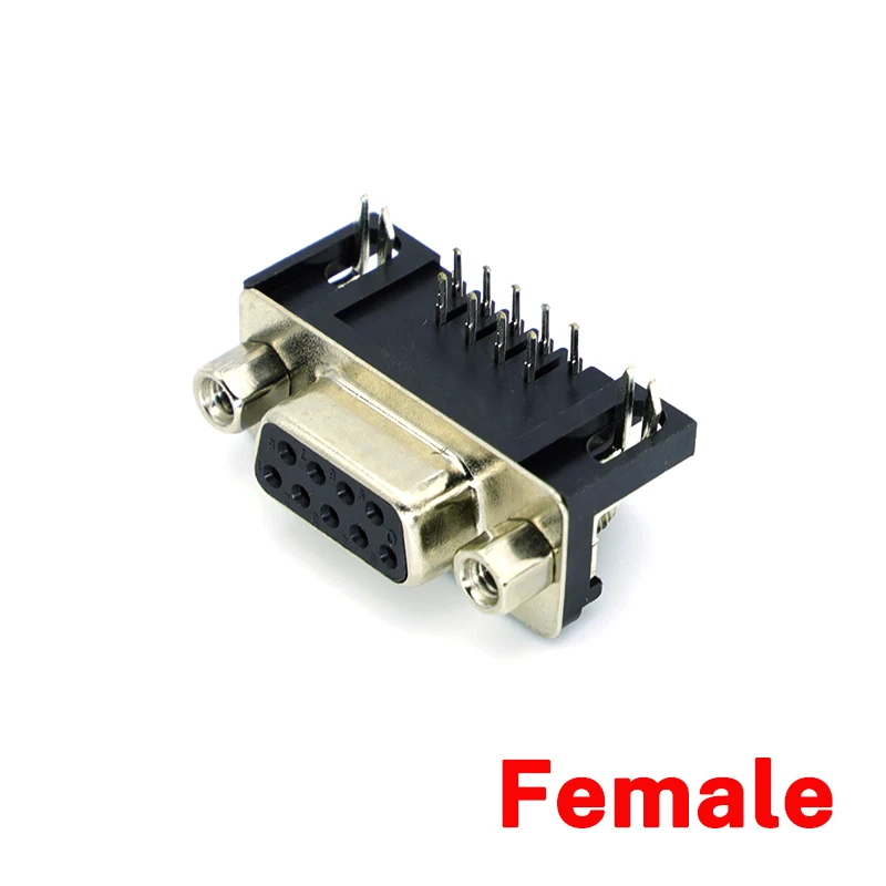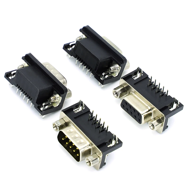 10 Uds DR9 macho o hembra PCB montaje D-Sub 9Pin PCB conector RS232 conector de 90 grados aguja doblada insertar placa soldadura DB9
