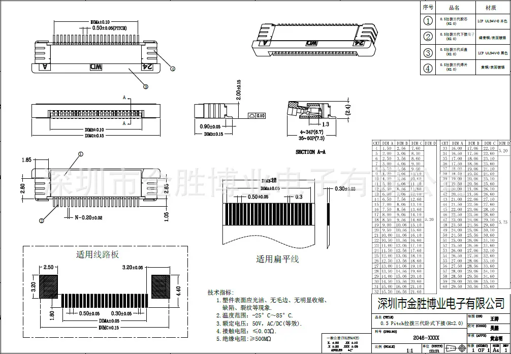 10 Uds Ffc Fpc conector de Cable paso 0,5mm alto 2mm cajón inferior tipo contacto enchufes 4p 6p 8p 10p 12p 16p 20p 30p 40p