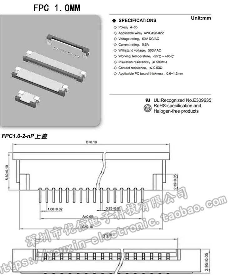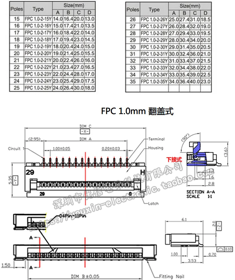 10 Uds 1mm paso bajo enchufe tipo almeja FPC FFC conector de Cable plano 4P 5P 8P 10P 12P 14P 16P 20P 22P 24P 30P 34P