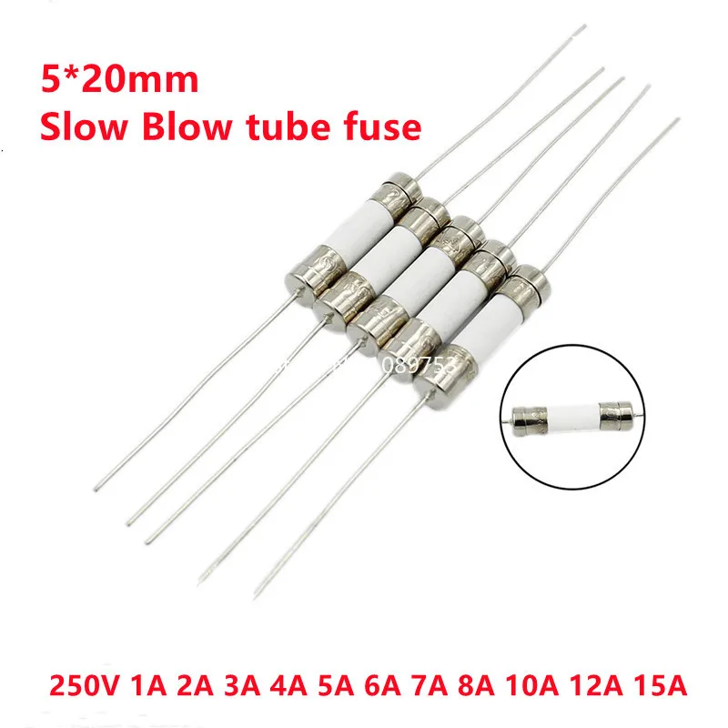 10 Uds 5*20mm fusible de cerámica fusible de tubo de soplado lento con un pasador 5x20mm 250V 1A 2A 3A 4A 6A 7A 8A 10A 12A 15A