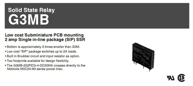 10 Uds G3MB-202P DC-AC PCB SSR en 5VDC, salida 240V AC 2A relé de estado sólido