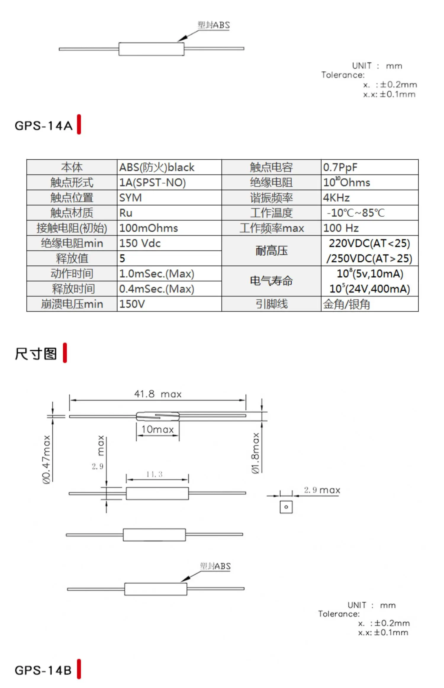 10 Uds GPS-11A GPS-14A GPS-14B interruptor de láminas tipo plástico normalmente abierto interruptor magnético de cierre Normal antivibración