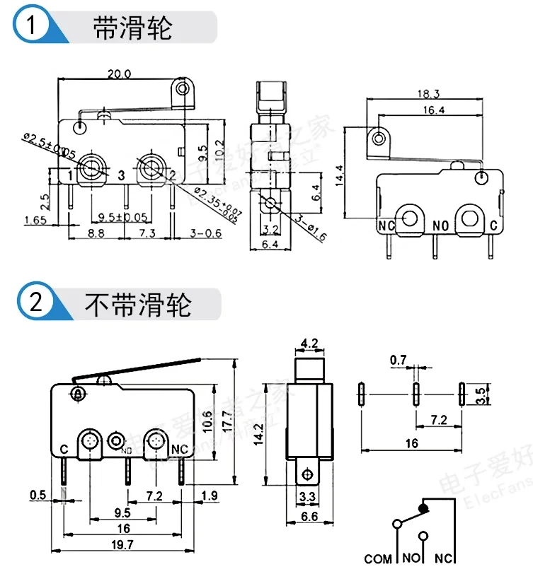 Comprar 10 Uds gran oferta Mini Micro interruptor de 3 pines con interruptor de límite de rodillo