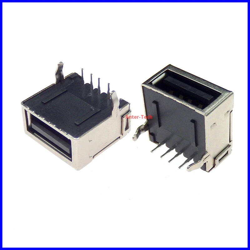 Comprar 10 Uds gran oferta USB tipo A puerto estándar hembra conector de soldadura PCB enchufe USB-A tipo hembra 90 ° Pie del codo