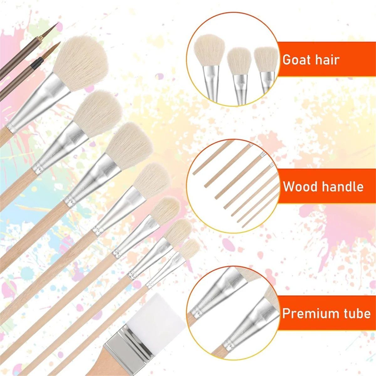 Los pinceles artísticos están hechos de pelo de cola de cabra, que tiene una excelente absorción del esmalte.Además, el mango de madera proporciona un agarre cómodo, mejorando la experiencia general de pintura.