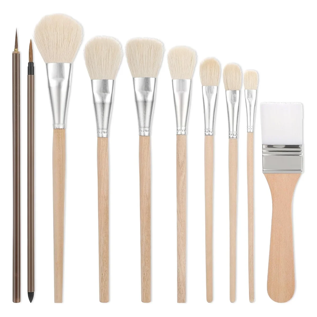 Comprar 10 Uds. Juego de pinceles de cerámica para esmalte de cerámica, juego de pinceles de lana para acuarela para estudiantes, adultos y niños