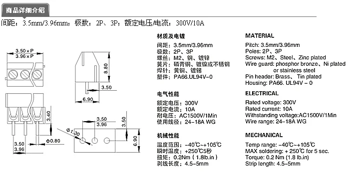 Comprar 10 Uds. KF350 2P 3P 3,5mm Pitch Green Pin Screw Terminal Block conector KF350 amphenol conector 250V/10A