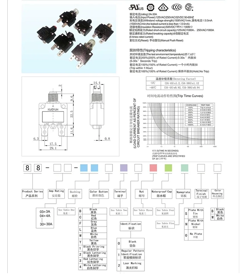 10 Uds KUOYUH serie 88 Protector de sobrecarga de disyuntor 3A 4A 5A 6A 7A 8A 9A 10A 11A 12A 13A 14A 15A 16A 17A 18A 19A 20A 25A