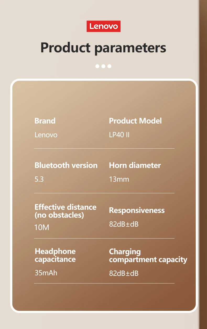 10 Uds Lenovo LP40 II 100% Original 5 uds lp40plus TWS auriculares inalámbricos Bluetooth 5,3 deporte reducción de ruido auriculares Control táctil