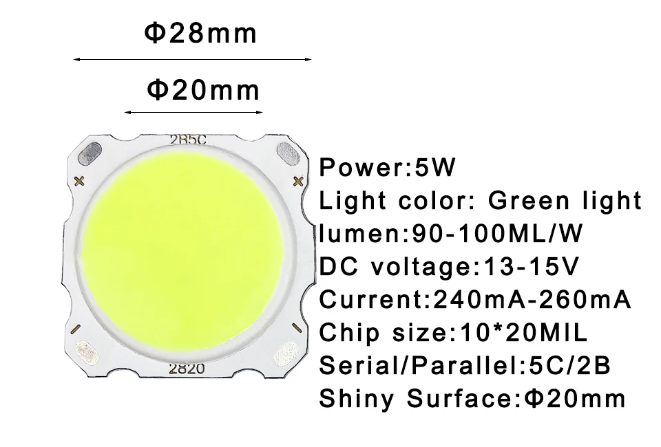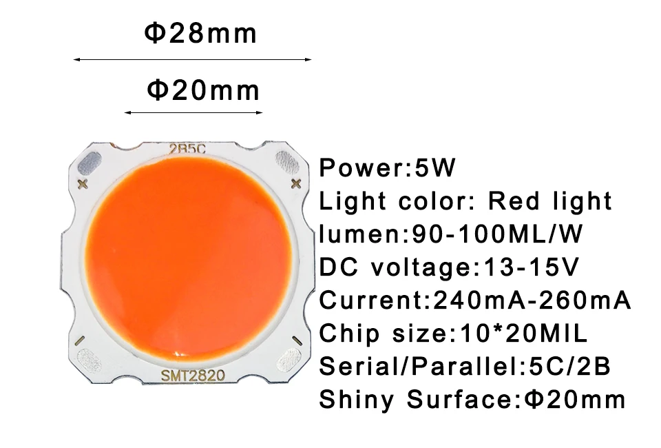 10 Uds. Por lote, Chip de fuente Led rojo, azul y verde, alta potencia, 5W, superficie brillante COB, bombilla de 20mm, foco, lámparas de luz descendente