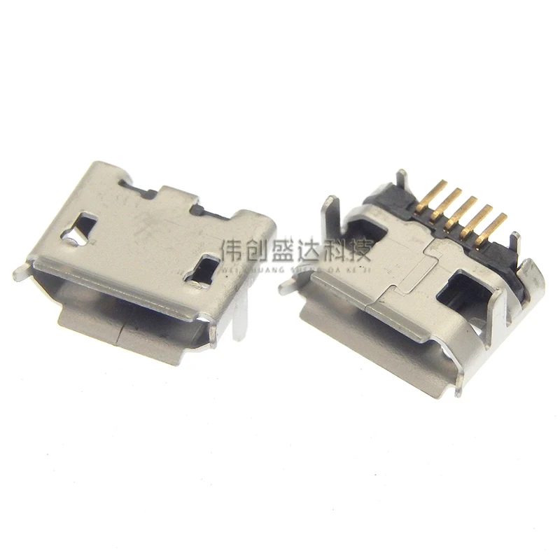 Comprar 10 Uds Micro USB 5pin sin bocina de buey lateral enchufe usb hembra boca plana cuatro patas enchufe mini conector usb
