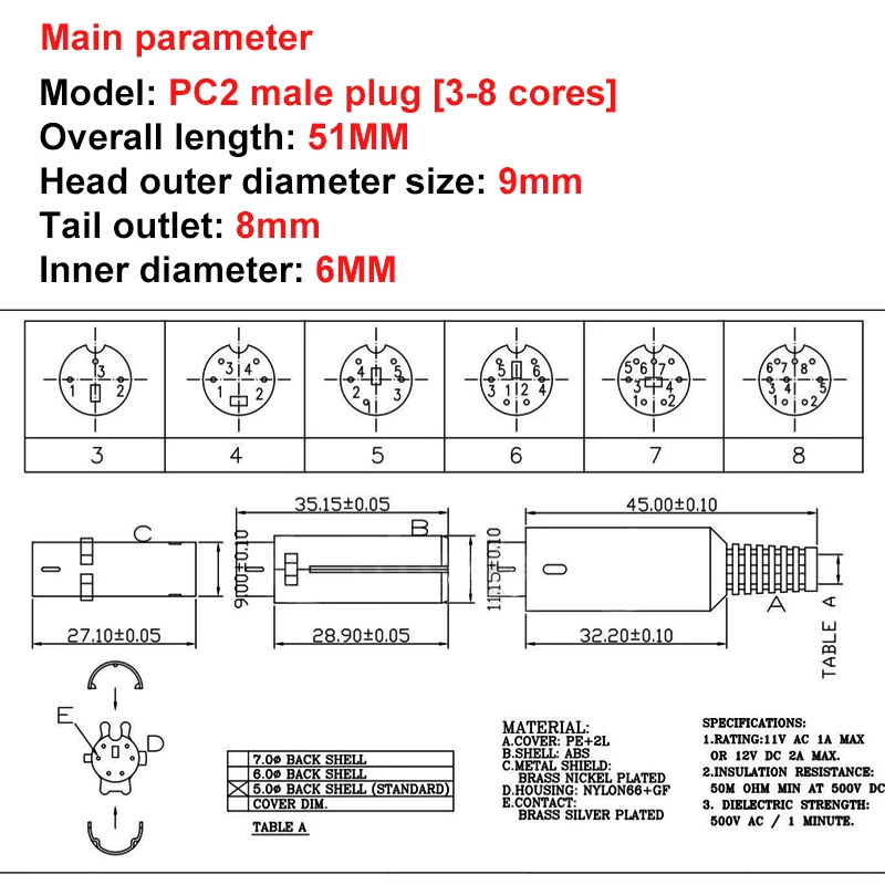 Comprar 10 Uds Mini 3/4/5/6/7/8/9 pines enchufe macho Din con adaptador de mango de plástico Cables de soldadura conector DIY