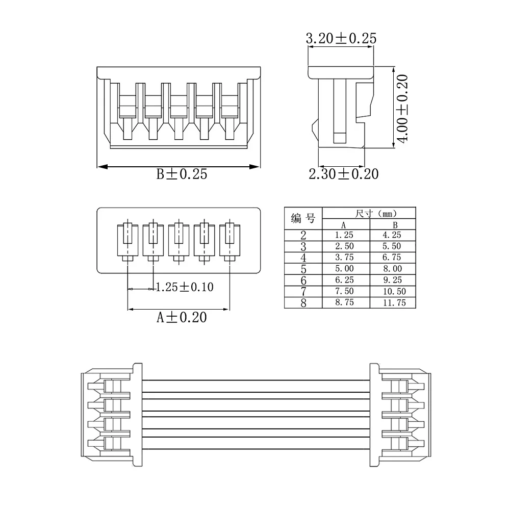 10 Uds Mini JST 1.25mm paso MX 1,25 2/3/4/5/6/8 pines conector hembra a hembra con cables de PVC 28AWG Cable 10/15/20/30CM
