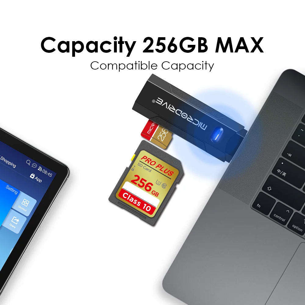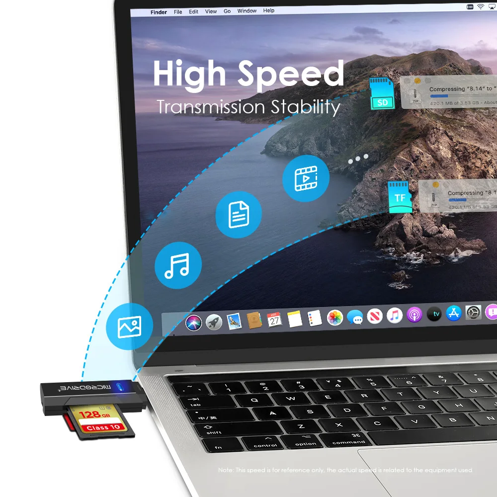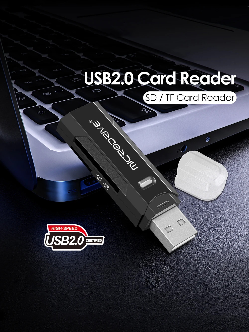Se utiliza para leer/almacenar documentos, vídeos, audio y fotografías en una tarjeta de memoria.Admite conexión en caliente, plug and play sin controlador