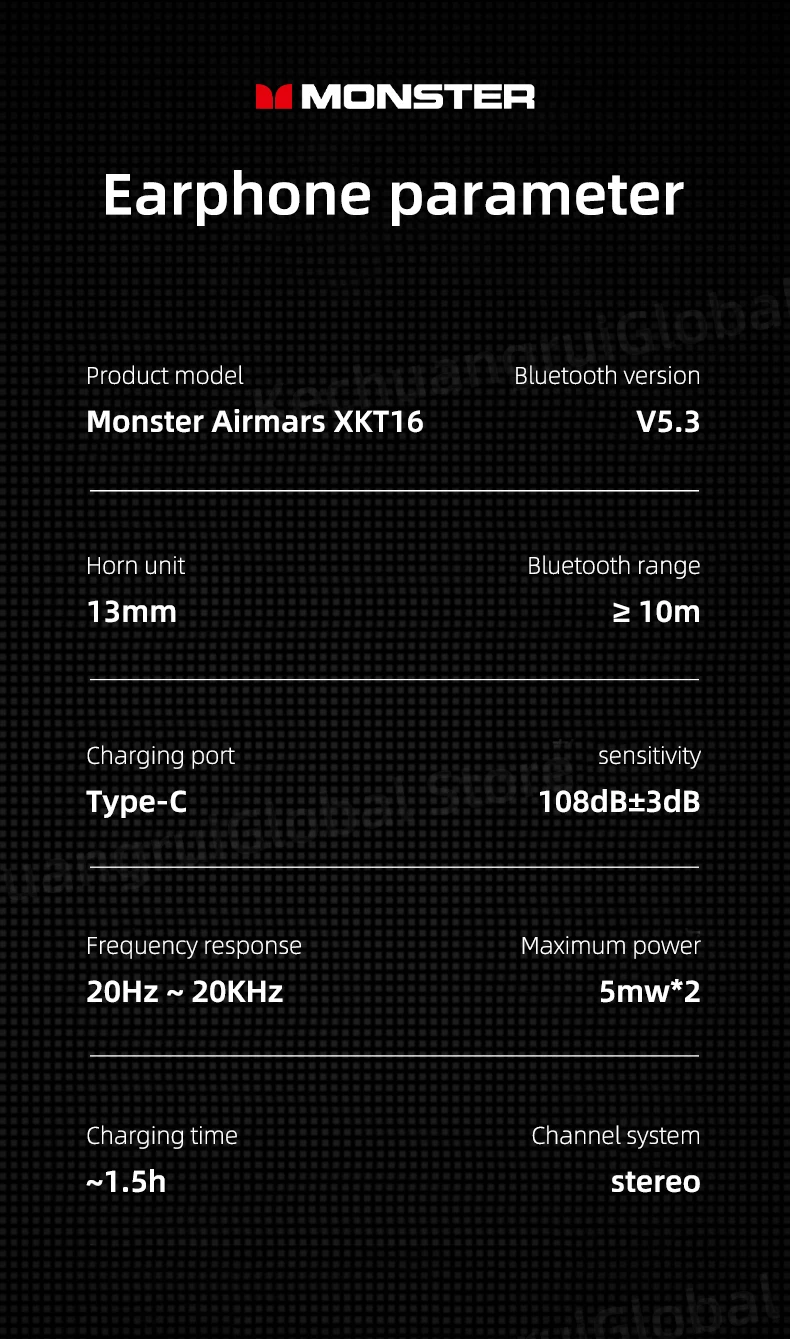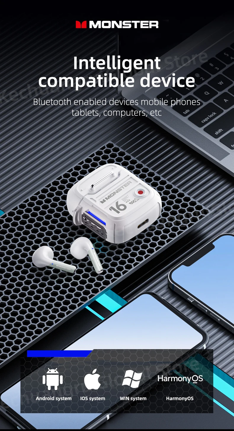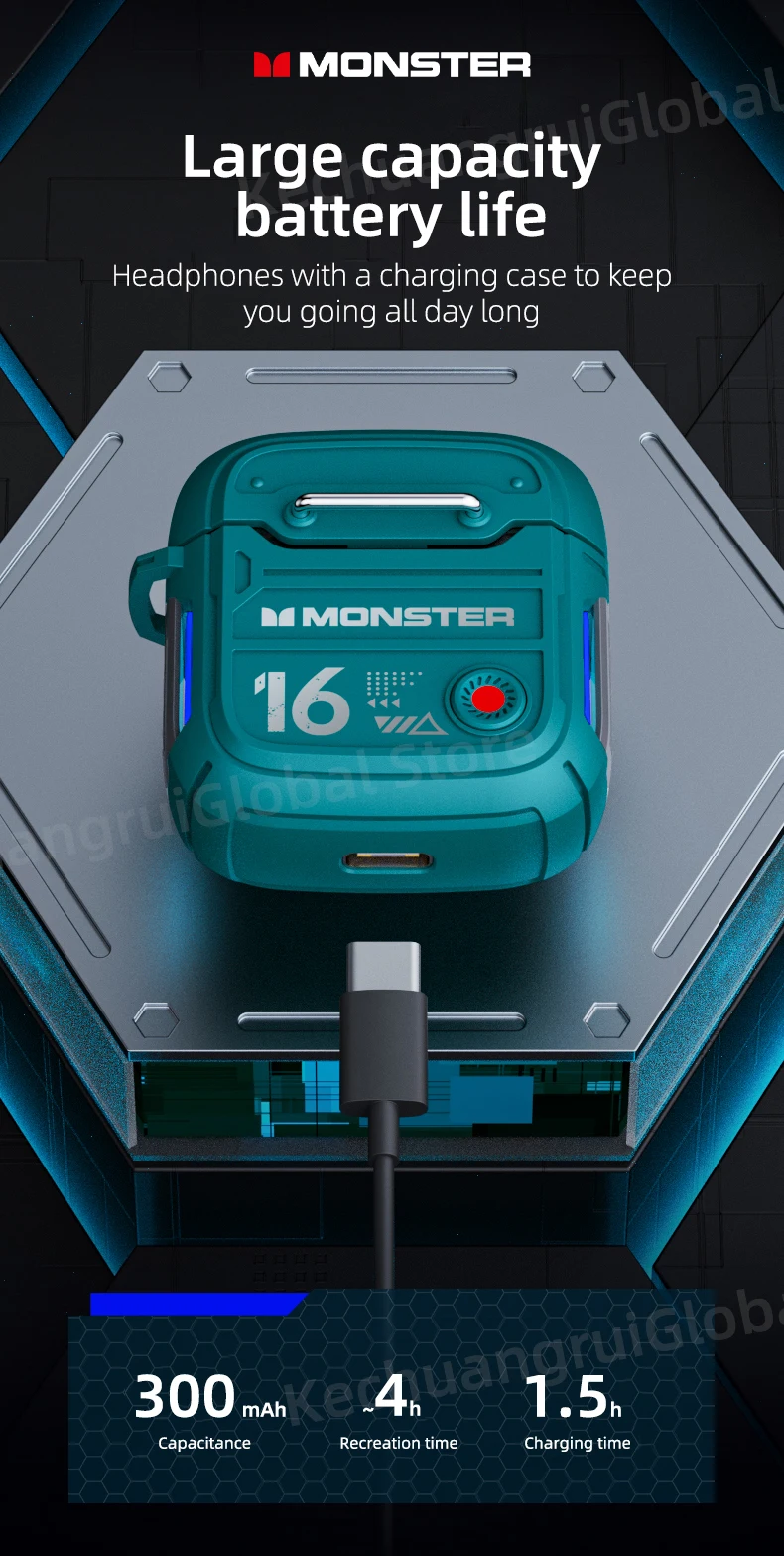 Comprar 10 Uds Monster XKT16 auriculares Bluetooth 5,3 TWS auriculares deportivos inalámbricos para juegos mecánicos auriculares con reducción de ruido 5 uds/2 uds