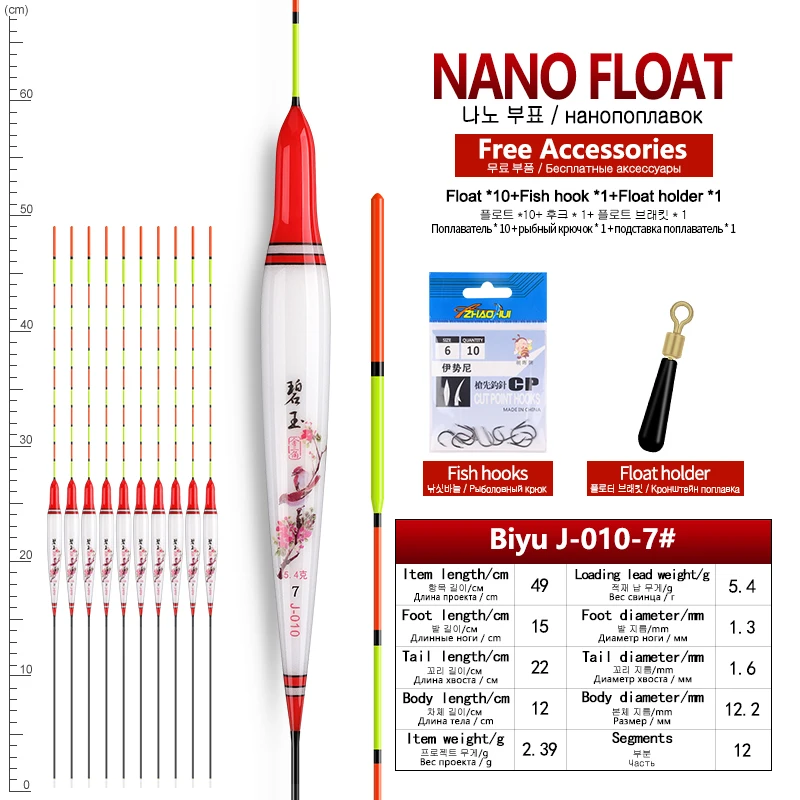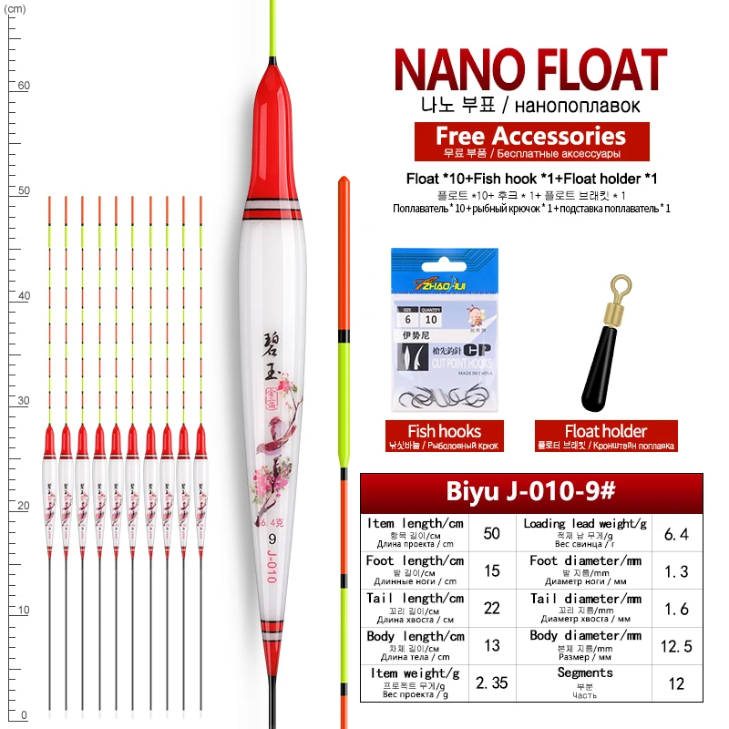 Comprar 10 Uds Nano flotadores de pesca + 1 ganchos de bolsa + 1 flotador de apoyo boya de agua dulce Bobber Lake River herramientas Boya estables accesorios aparejos