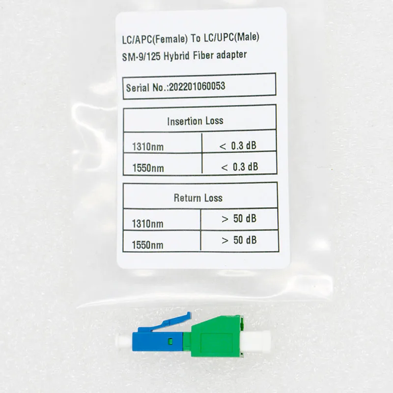 Adaptador de tipo macho y hembra con fibra óptica integrada y virola de fibra óptica que coincide con la tecnología de junta de tubo, puede ser un tipo de conectores de fibra óptica (macho) en otro tipo de conector de fibra óptica (macho) o un tipo de conector de fibra óptica (hembra) en un tipo de interfaz de conector de fibra óptica (hembra), tiene las ventajas de un volumen pequeño, liviano, fácil de usar, características de rendimiento estables, ampliamente utilizado en el campo de pruebas de instrumentos de equipos de fibra óptica y proyectos de rescate.