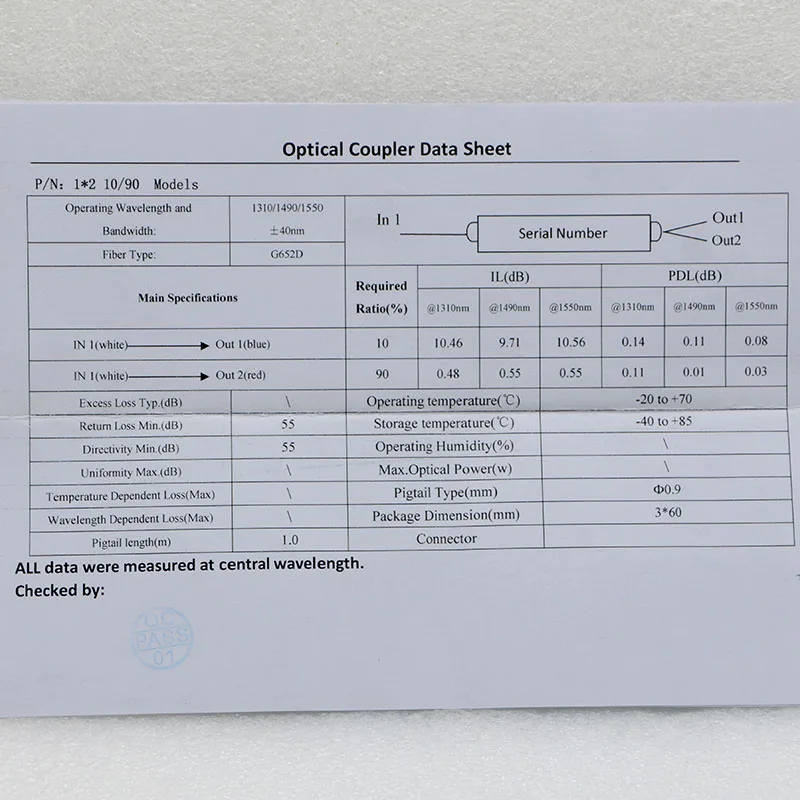 10PCS New Mini Fiber Optic Splitter 0.9mm Single Mode1x2 ,10:90 Pull Cone Splitter Without Connector Low Price Wholesale