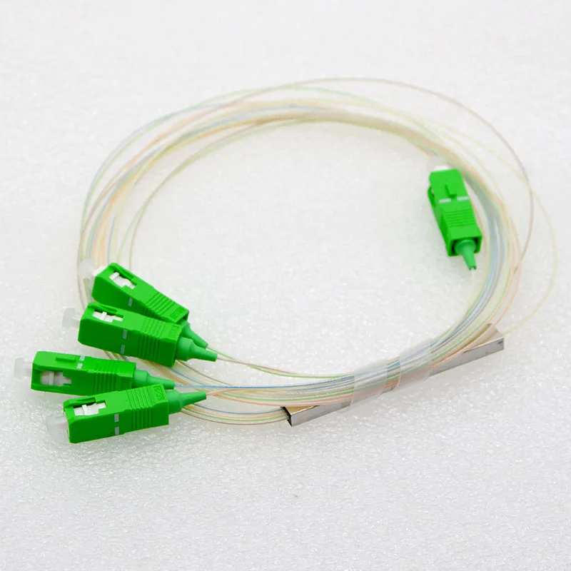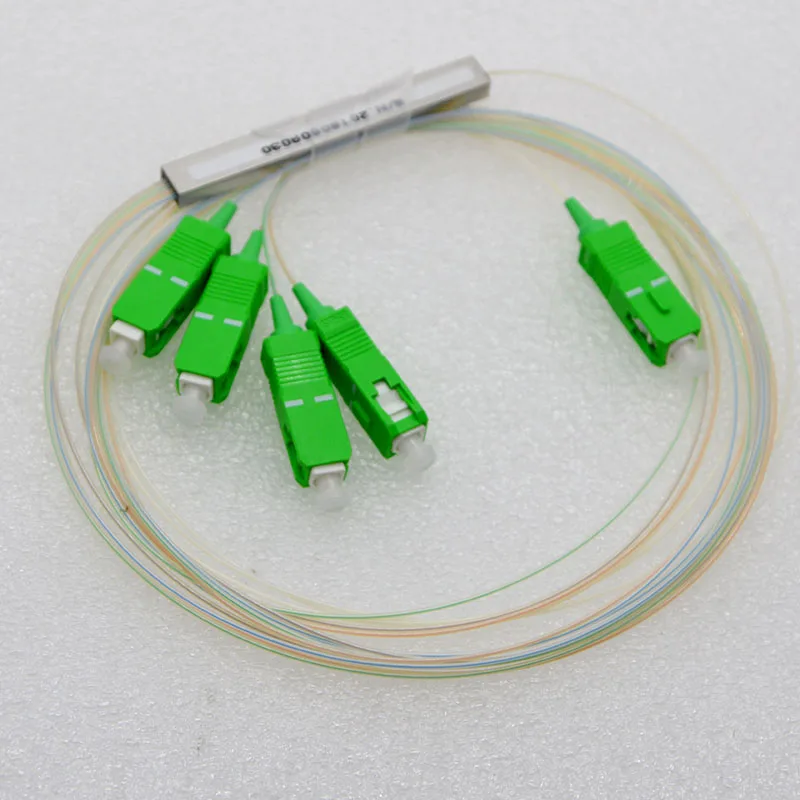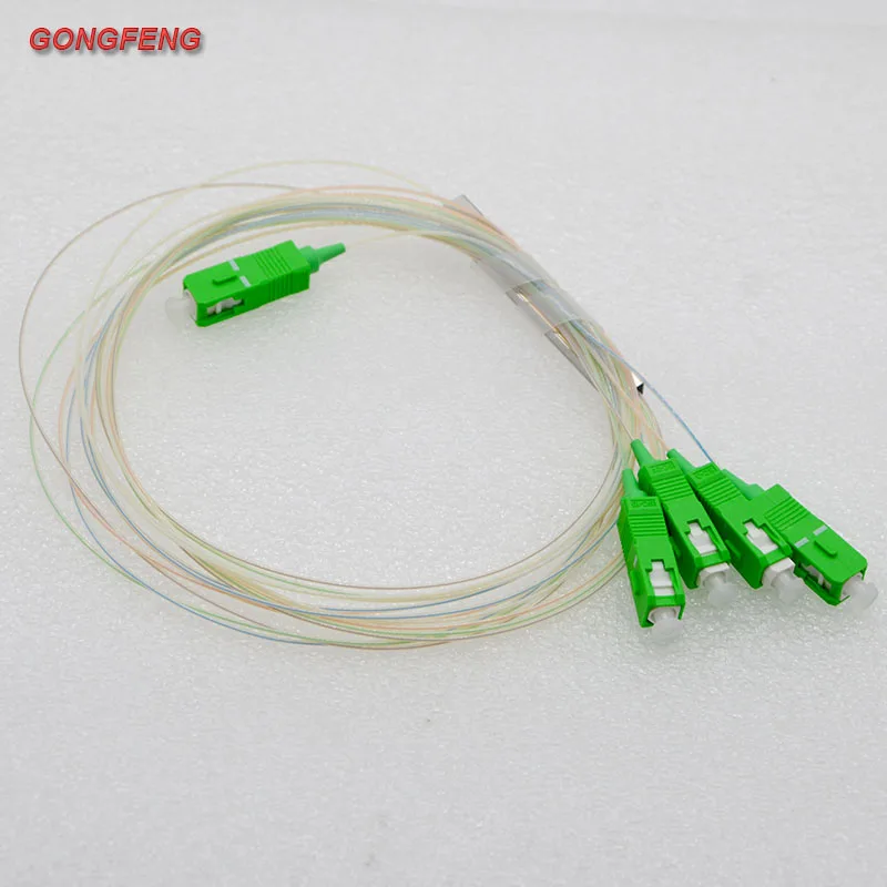 fiber optic connector, PLC splitter, 1 points 4 fiber splitter, SC mini steel tube test, differential 0.9 bare fiber harness,